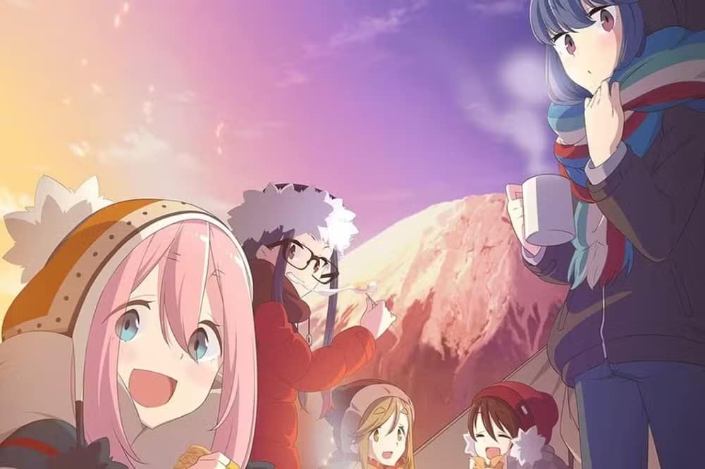 3. Laid-Back Camp (2018): Uma adolescente que gosta de ficar sozinha encontra conforto ao acampar na natureza, até formar uma amizade inesperada aos pés do Monte Fuji.