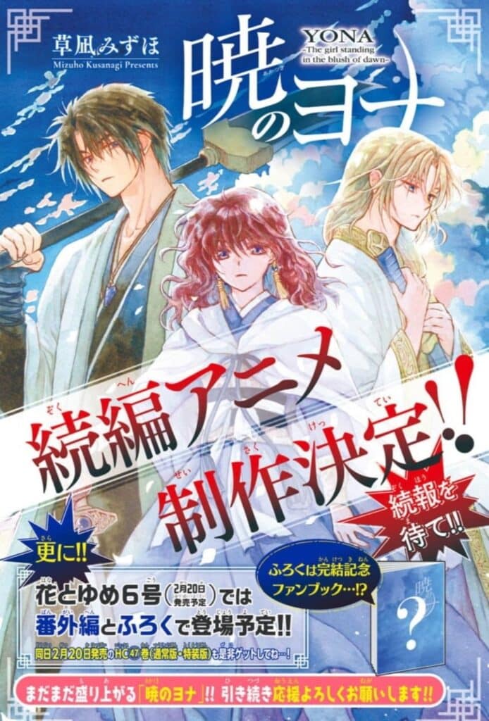 Com o lançamento do último capítulo do mangá de Akatsuki no Yona (Yona of the Dawn), foi anunciado que a obra receberá continuação em anime.